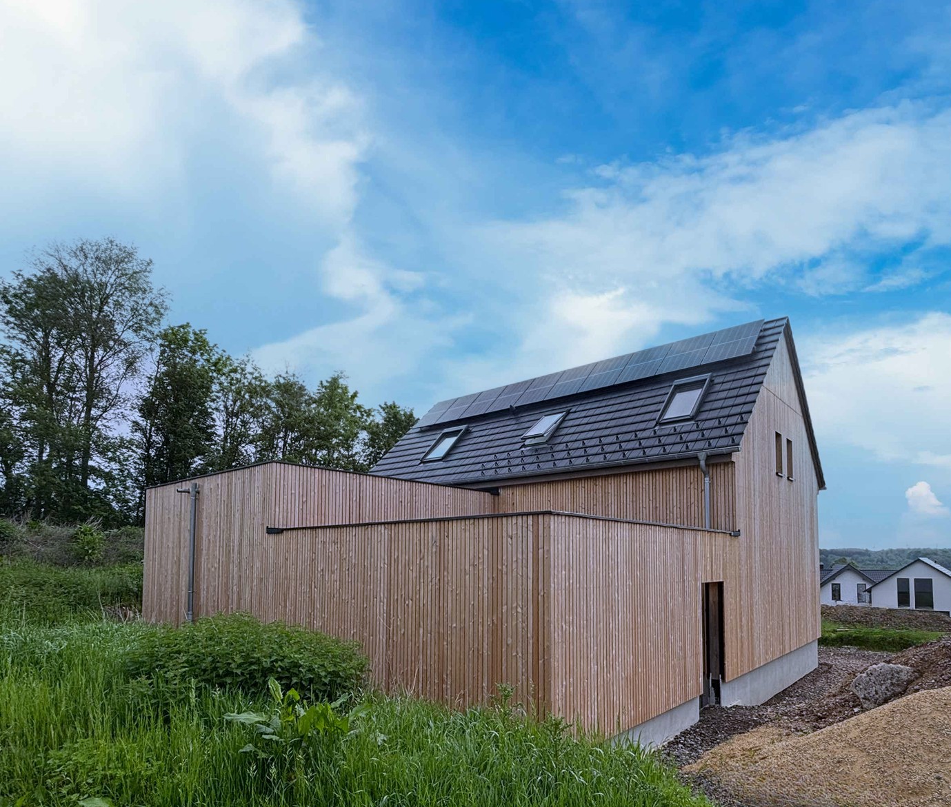 Auch bei diesem Projekt setzen die Bauherren in Sachen Dämmung auf die unverwechselbaren Eigenschaften des Dämmstoff Holzweichfaser in Wand und Dach.