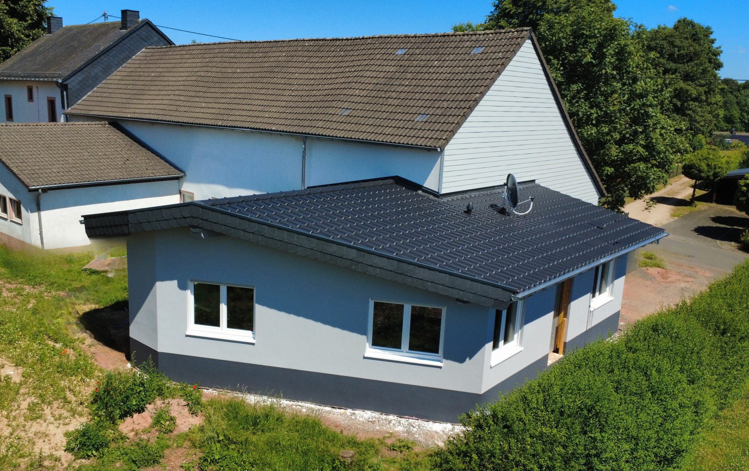 Ab Montag, 19.05.2025 errichtet Holzbau Fuchs einen eingeschossigen Anbau in Holzrahmenbauweise in 54570 Kalenborn-Scheuern, Maarstraße 6.